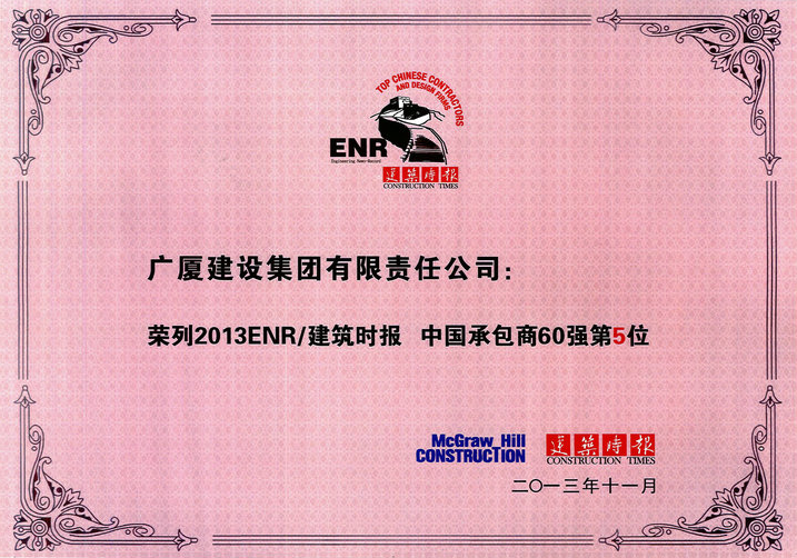 11月22日,由2013ENR/建筑時(shí)報(bào)主板的“中國(guó)承包商和工程設(shè)計(jì)企業(yè)雙60強(qiáng)”頒獎(jiǎng)典禮在南寧隆重召開,廣廈建設(shè)集團(tuán)有限責(zé)任公司榮列“中國(guó)承包商60強(qiáng)”第五名,被評(píng)為“中國(guó)建筑業(yè)行業(yè)標(biāo)桿企業(yè)”。住房和城鄉(xiāng)建設(shè)部政策研究中心、中國(guó)建筑業(yè)協(xié)會(huì)、中國(guó)勘察設(shè)計(jì)協(xié)會(huì)等領(lǐng)導(dǎo)出席頒獎(jiǎng)典禮并致辭。